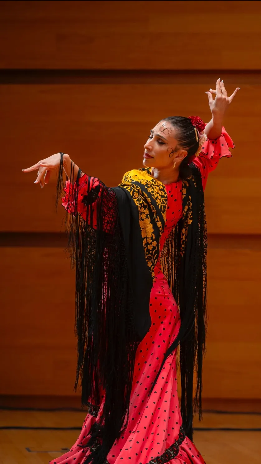 Soy Victoria Granado, bailaora malagueña licenciada en Pedagogía de la Danza Flamenca por el Conservatorio Superior de Madrid "María de Ávila". Mi carrera me ha llevado desde los tablaos más prestigiosos de España hasta escenarios internacionales en China, Rusia o EEUU, compartiendo escenario con grandes maestros del flamenco.